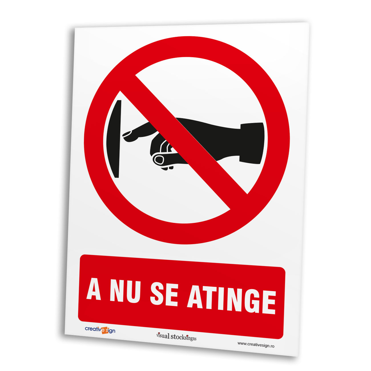 Caracteristici: : formă rotunda, pictogramă neagra pe fond alb , margine și bandă diagonală roșii, partea roșie acoperă cel putin 35% din suprafată.