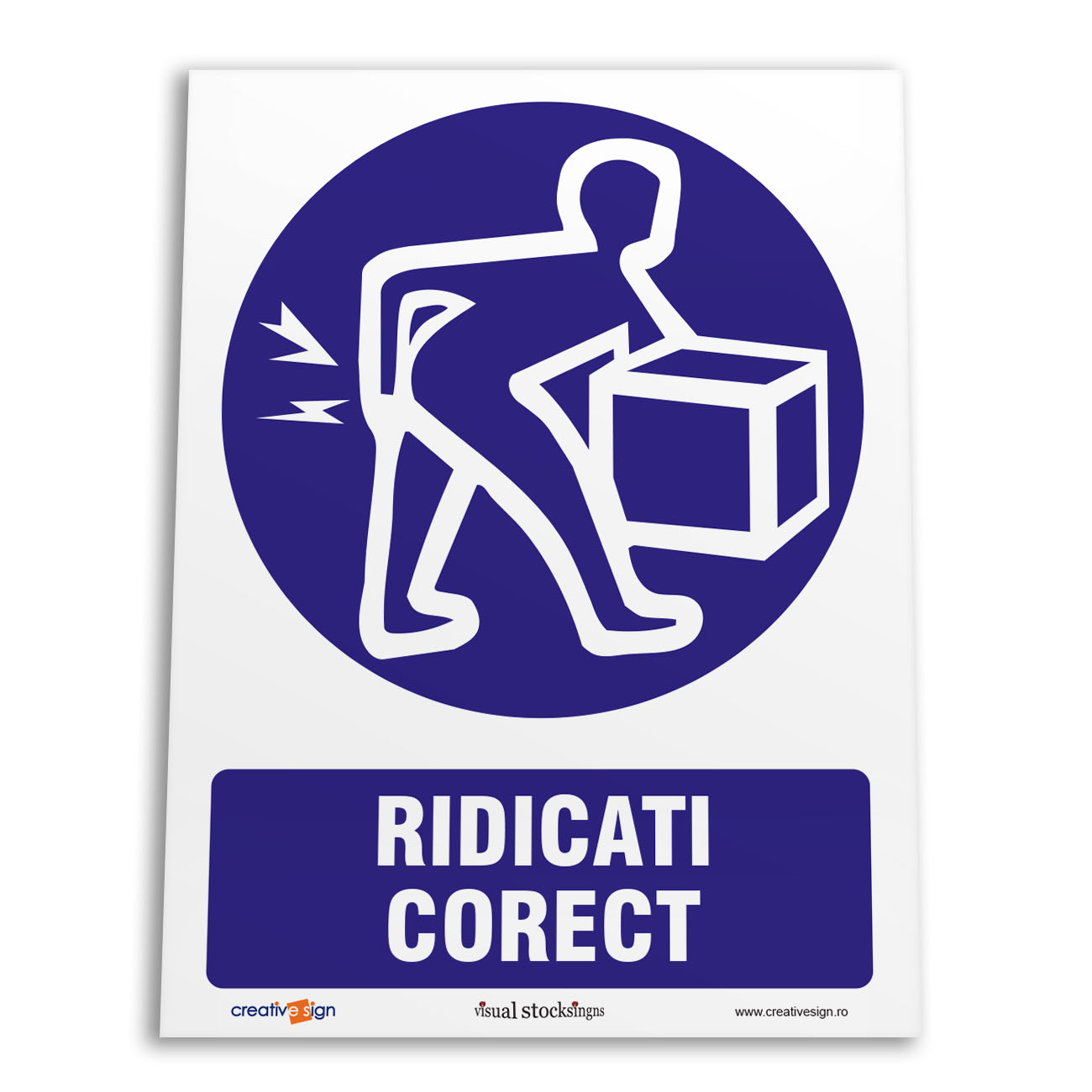 Caracteristici:pictogramă rotundă, simbol alb pe fond albastru, partea albastră acoperă cel putin 50% din suprafată.
