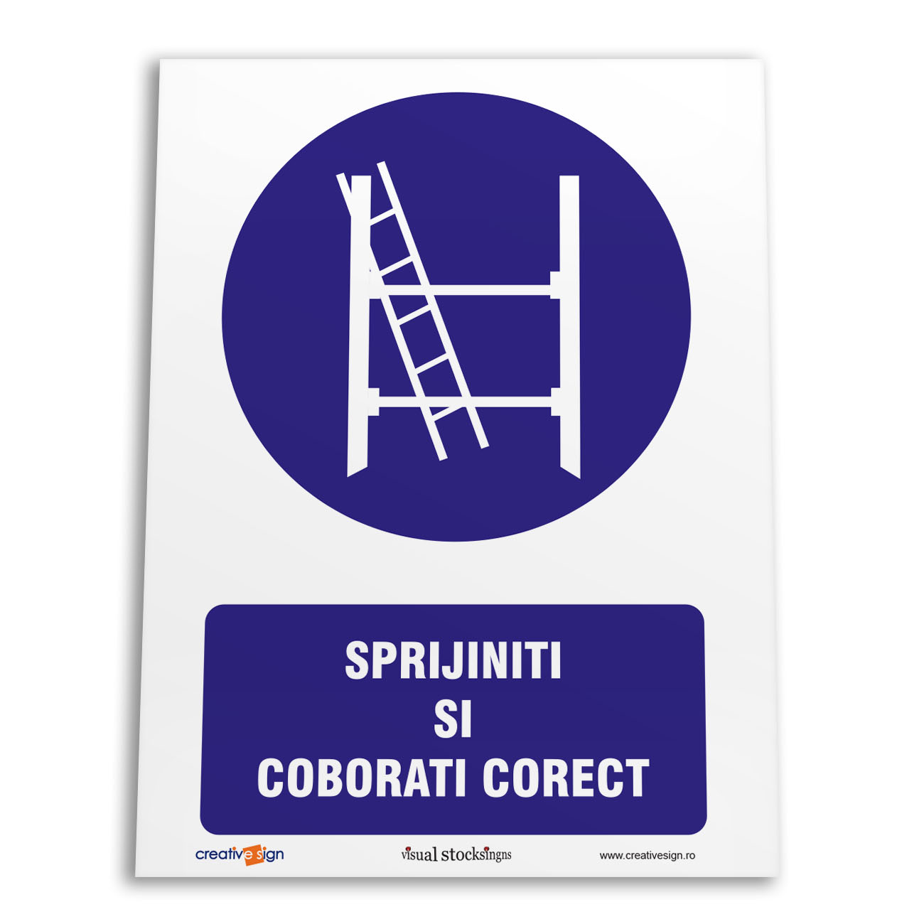 Caracteristici:pictogramă rotundă, simbol alb pe fond albastru, partea albastră acoperă cel putin 50% din suprafată.