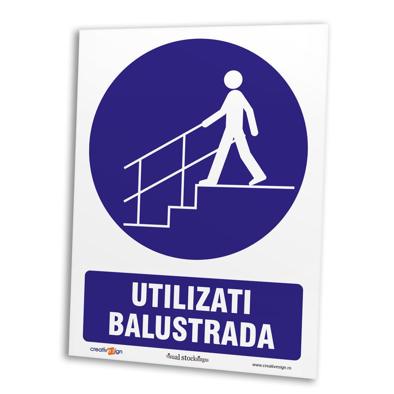 Caracteristici:pictogramă rotundă, simbol alb pe fond albastru, partea albastră acoperă cel putin 50% din suprafată.
