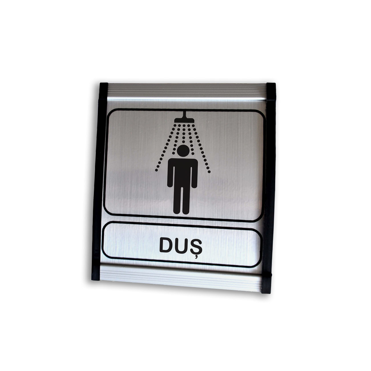 Caracteristici: profil de aluminiu prevăzut în interior cu interfața simbol și text duș, închiderea laterală cu capace din pvc.