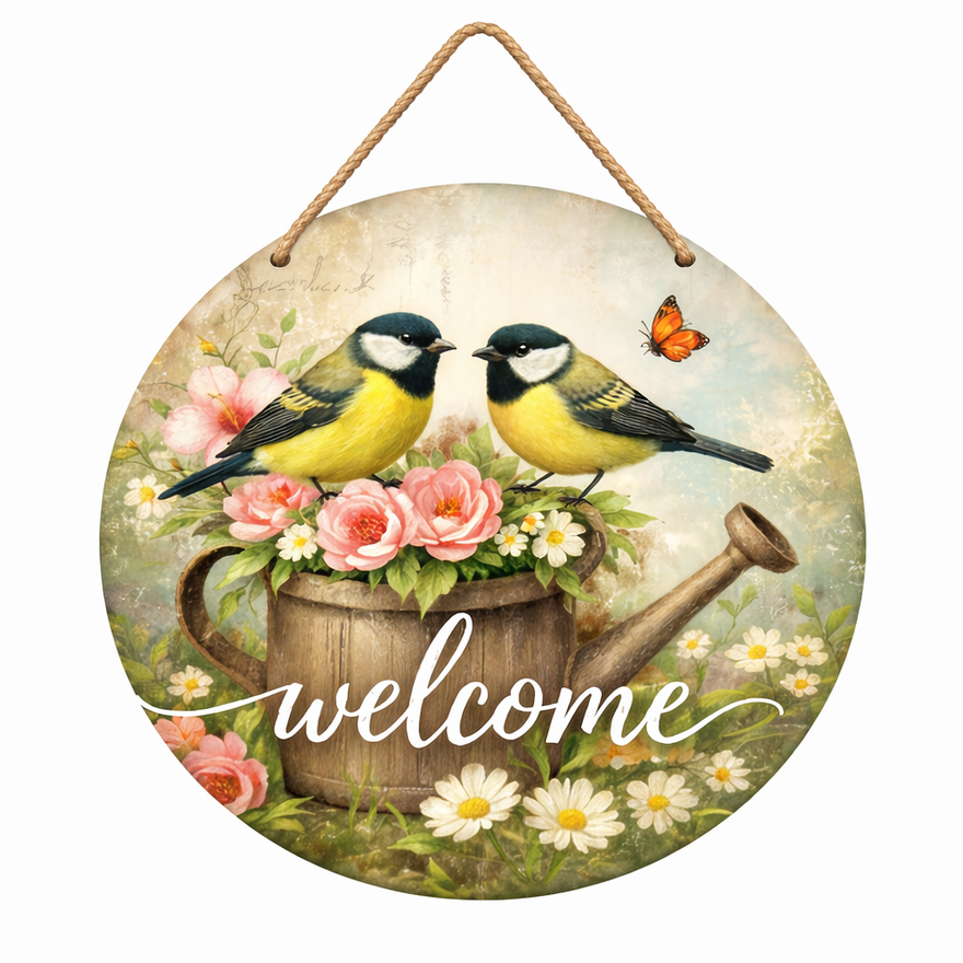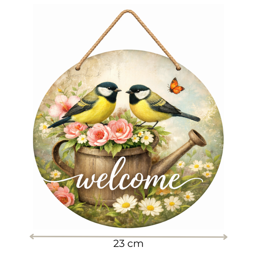 Adauga un accent cald si primitor casei tale cu acest semn decorativ „Welcome”. Designul cu pasari si flori creeaza o atmosfera calda si relaxanta, perfecta pentru casa, gradina sau  terasa. Ideal pentru a-l oferi cadou cuiva grad.