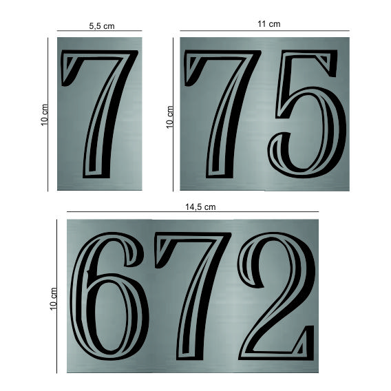 Dimensiuni cifra: 10cm înălțime și 5,5cm lățime. Indicatoarele sunt concepute pentru a se putea alatura astfel incat sa puteti compune foarte usor numere din mai multe cifre.