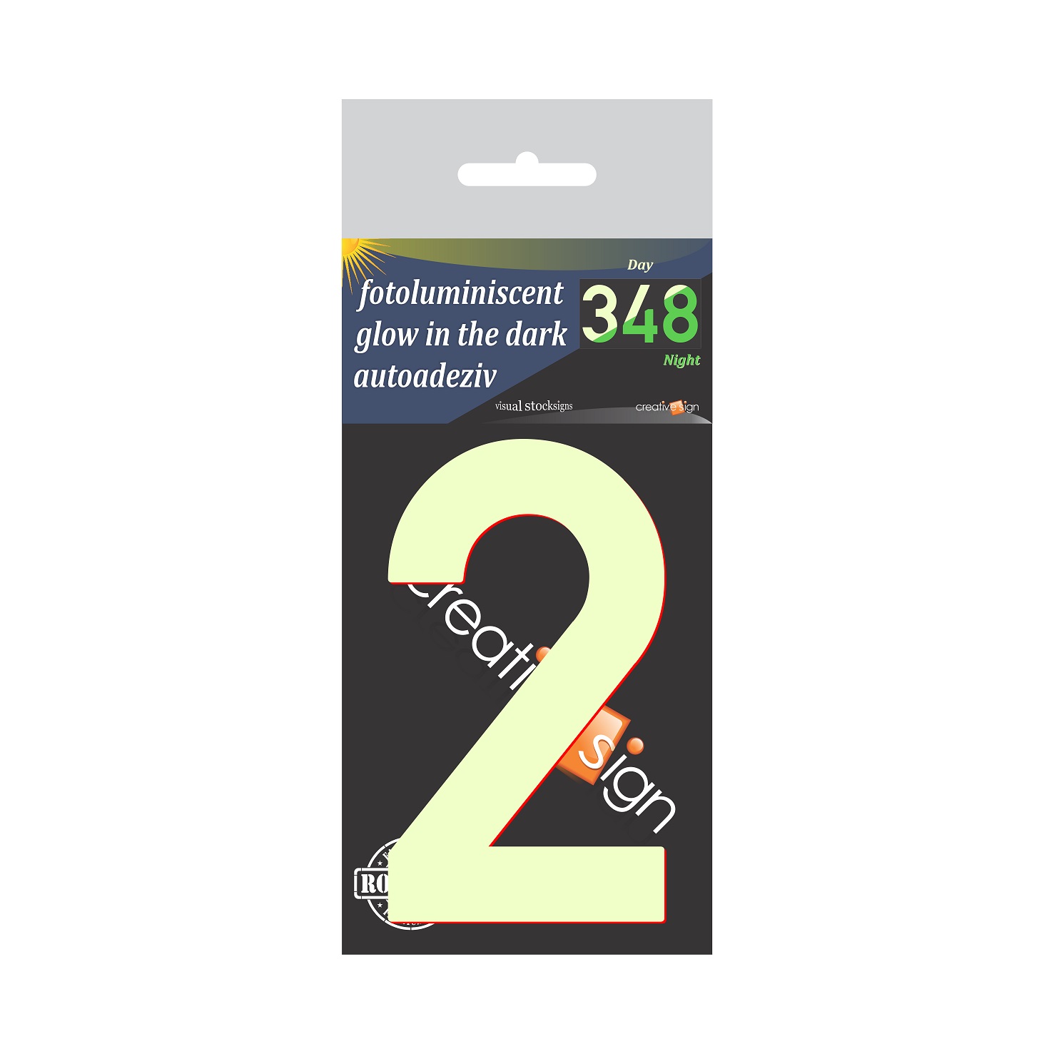 Indicator ABS fotoluminiscent cifra "2" (glow in the dark)