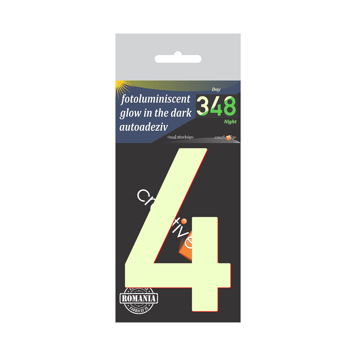 Indicator ABS fotoluminiscent cifra "4" (glow in the dark)