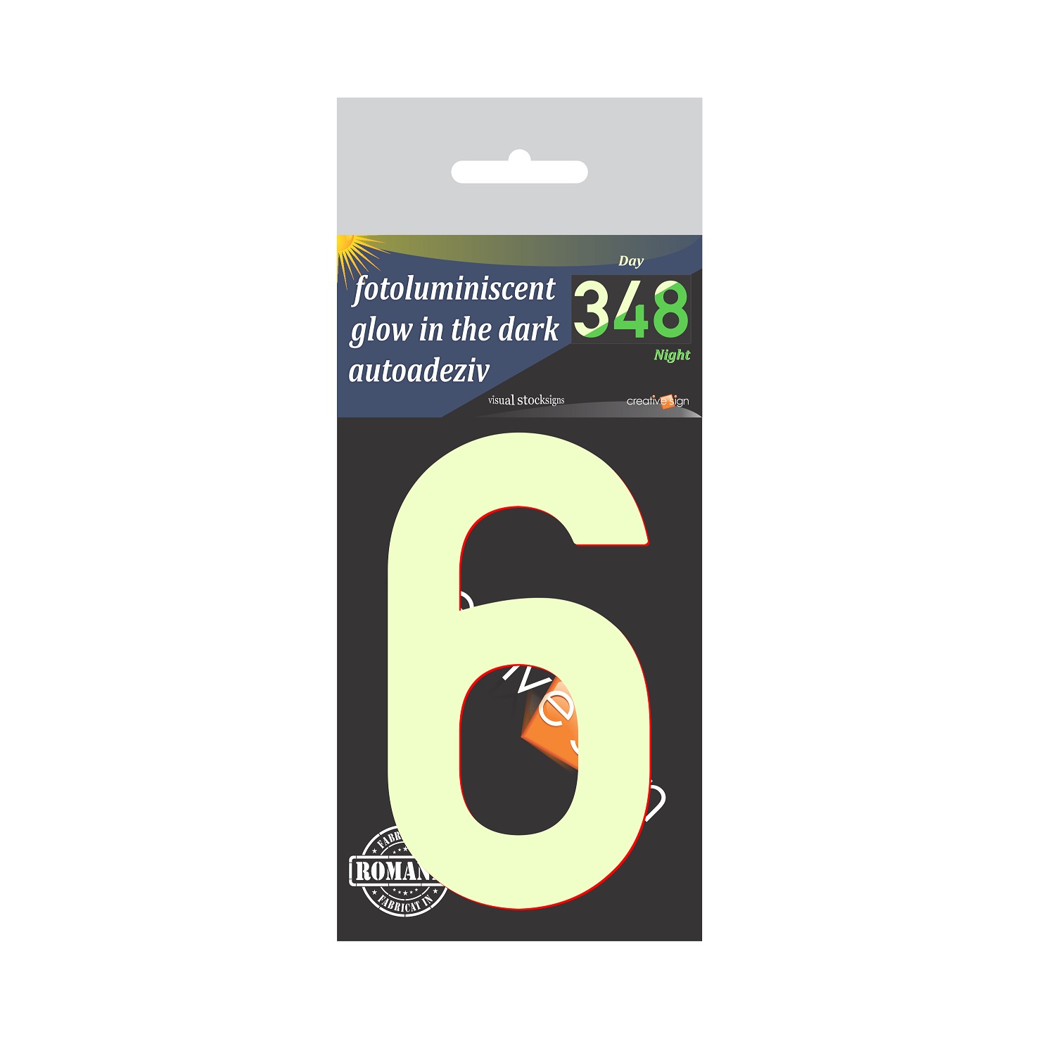Indicator ABS fotoluminiscent cifra "6" (glow in the dark)