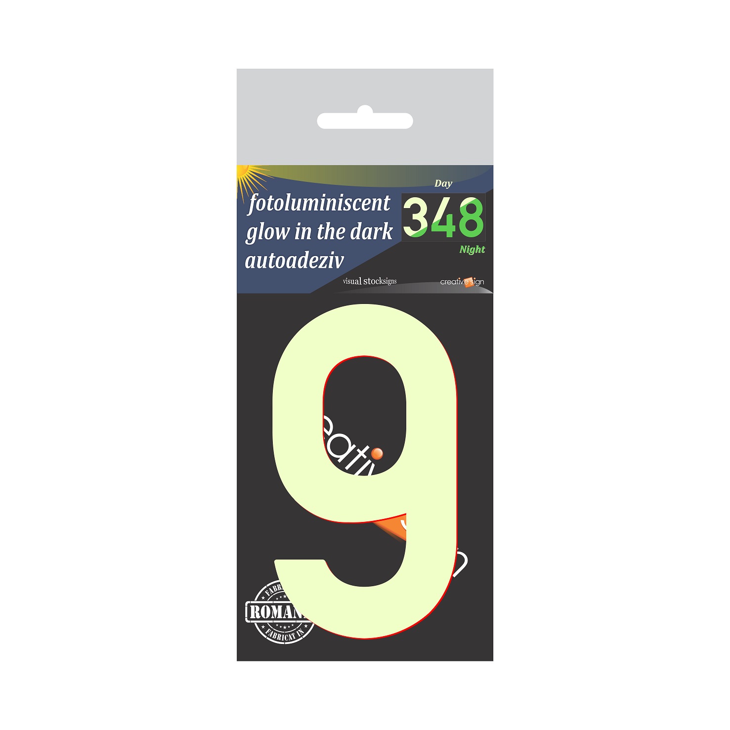 Indicator ABS fotoluminiscent cifra "9" (glow in the dark)