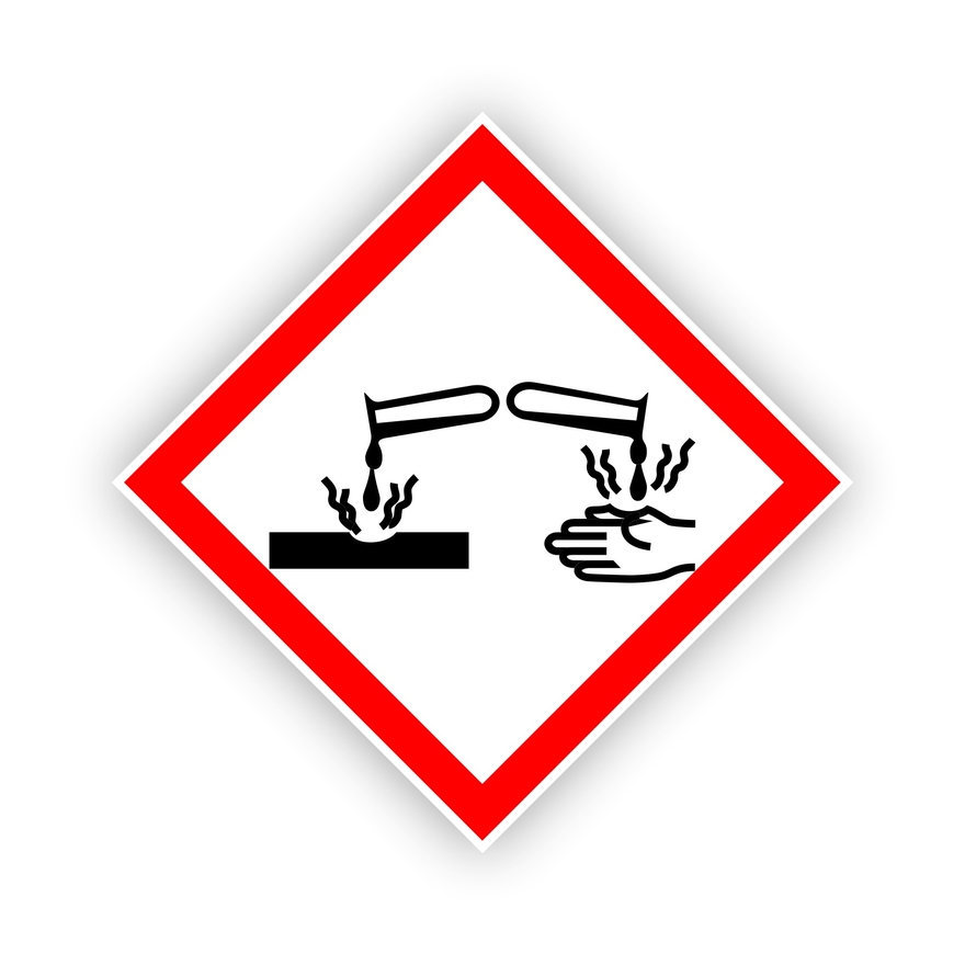• Tip de pericol: GHS05 semnalează pericolul de coroziune, avertizând asupra riscului de arsuri grave pe piele și deteriorare oculară, dar și asupra potențialului de deteriorare a materialelor metalice.