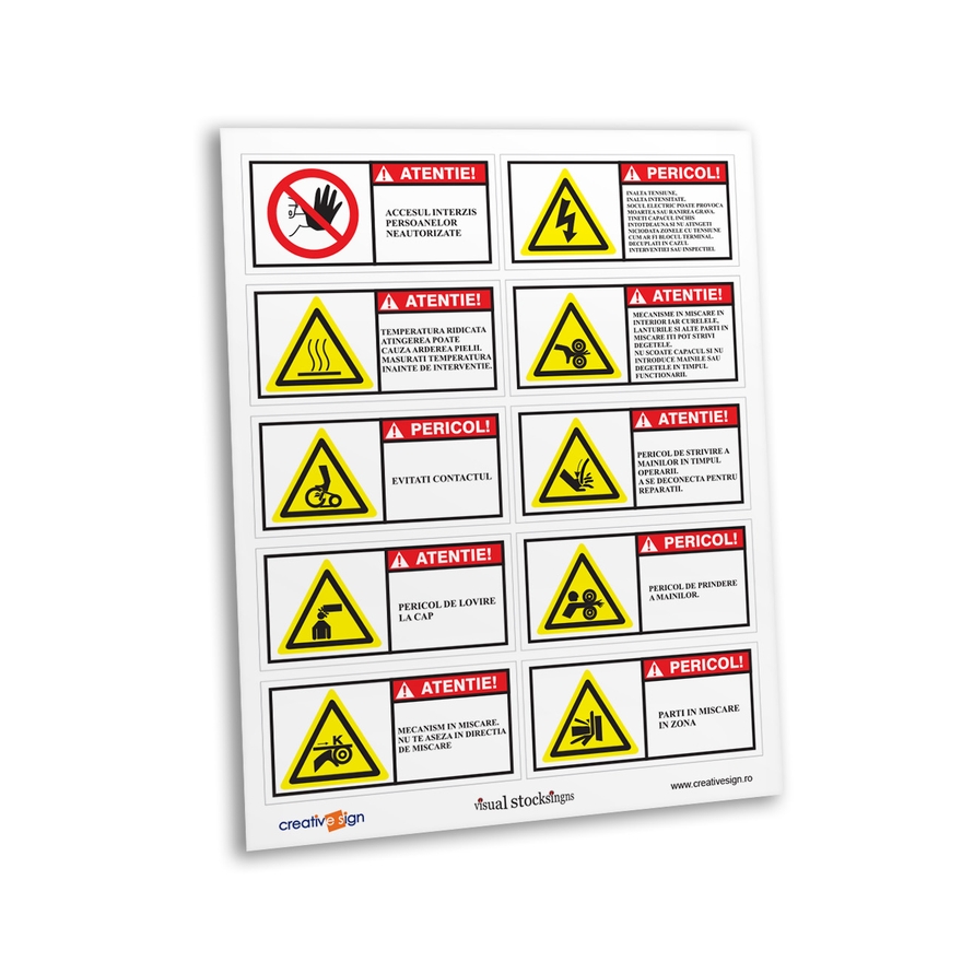 Instalare: Eticheta trebuie aplicată astfel încat orice persoană să fie informată la timp despre atitudinea care trebuie luată sau de prezența unui eventual risc.