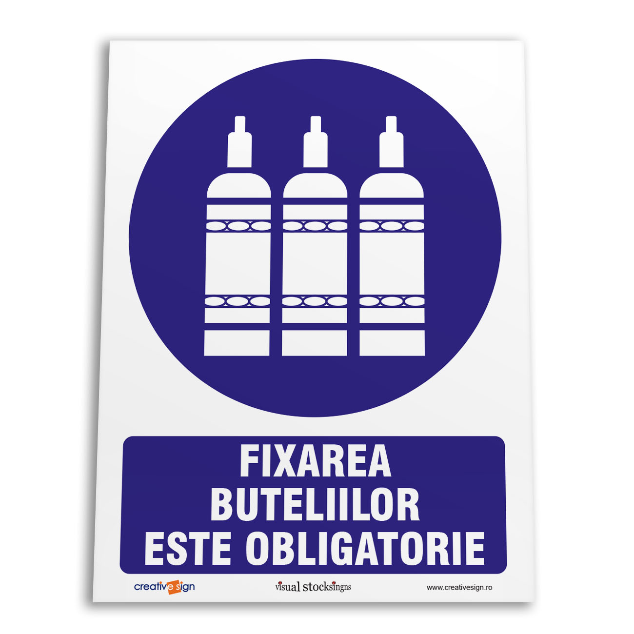 Caracteristici:pictogramă rotundă, simbol alb pe fond albastru, partea albastră acoperă cel putin 50% din suprafată.