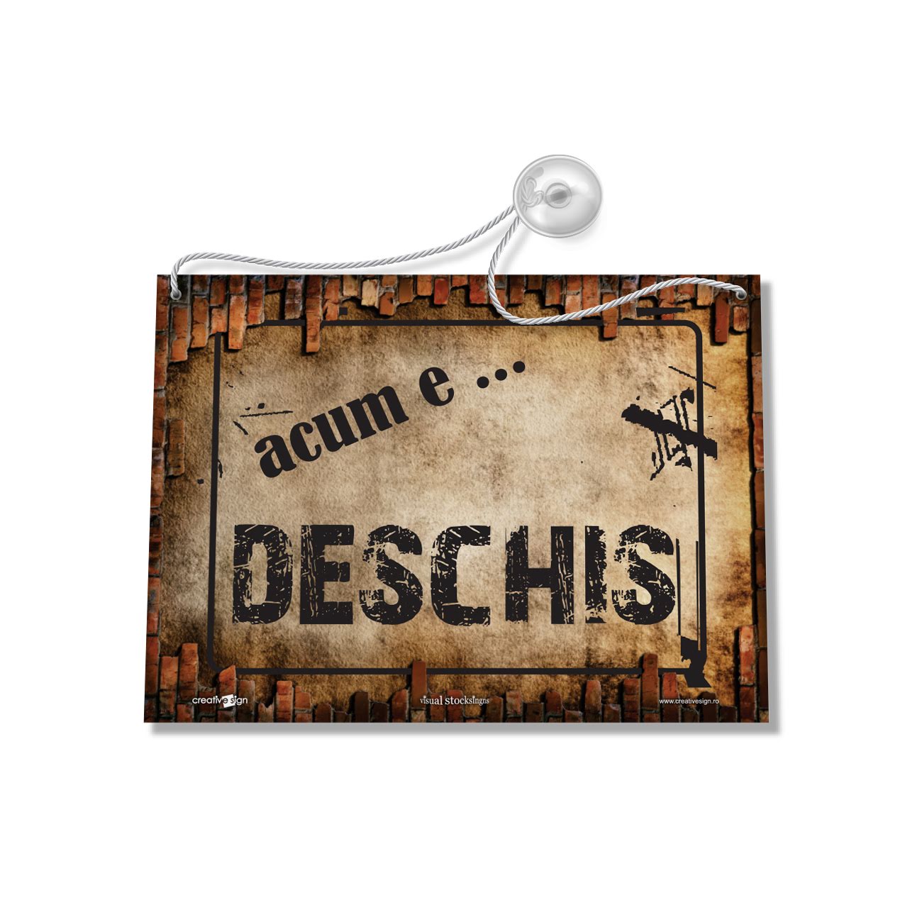 Imprimat față/verso, prevăzut cu șnur și ventuză.