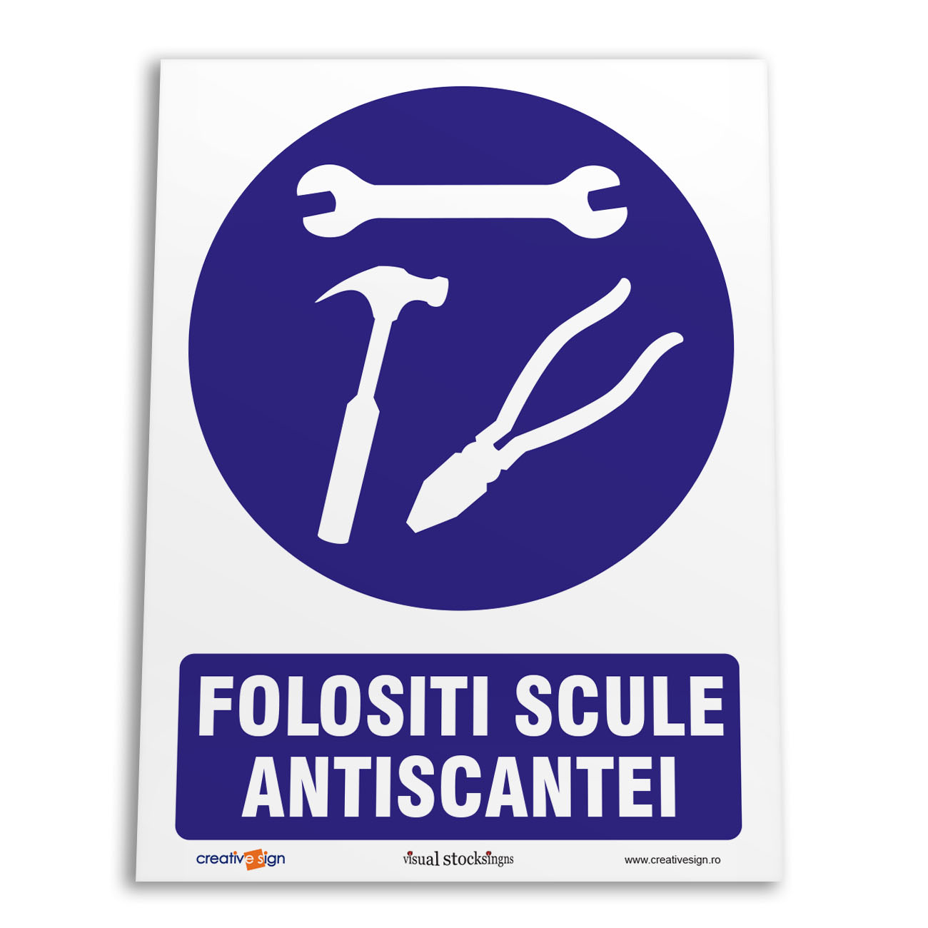 Caracteristici:pictogramă rotundă, simbol alb pe fond albastru, partea albastră acoperă cel putin 50% din suprafată.