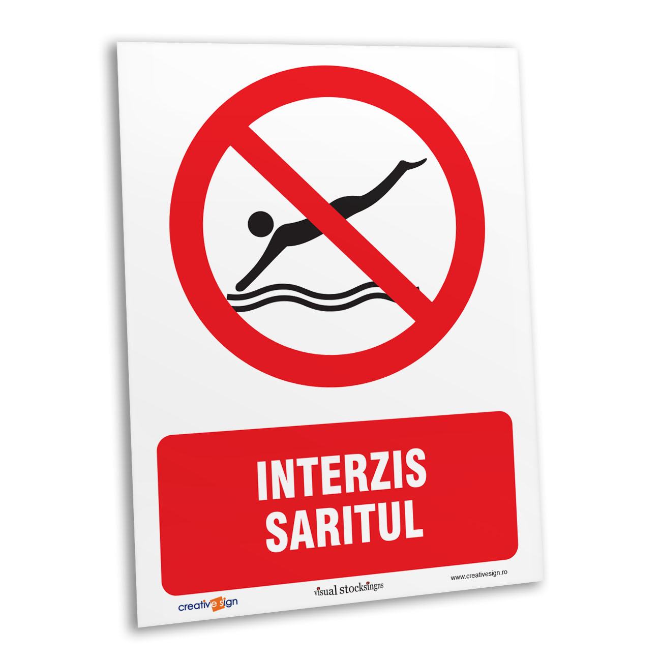 Caracteristici: : formă rotunda, pictogramă neagra pe fond alb , margine și bandă diagonală roșii, partea roșie acoperă cel putin 35% din suprafată.