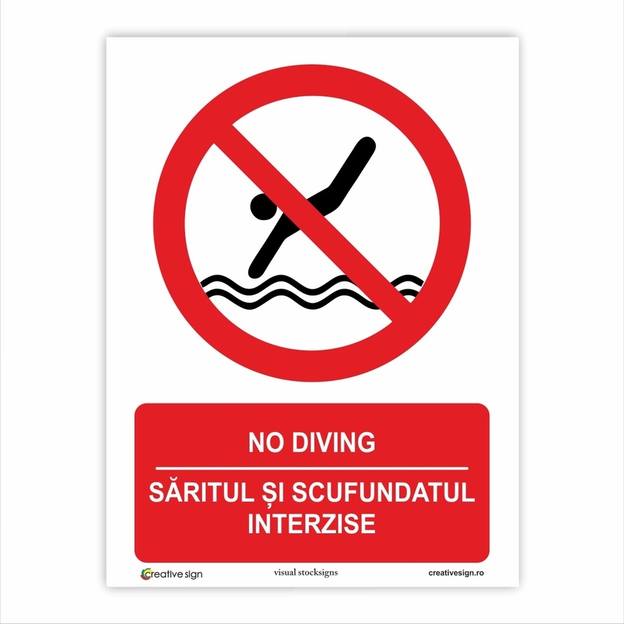 Indicator interdicție “No diving” / “Săritul și scufundatul interzise”
