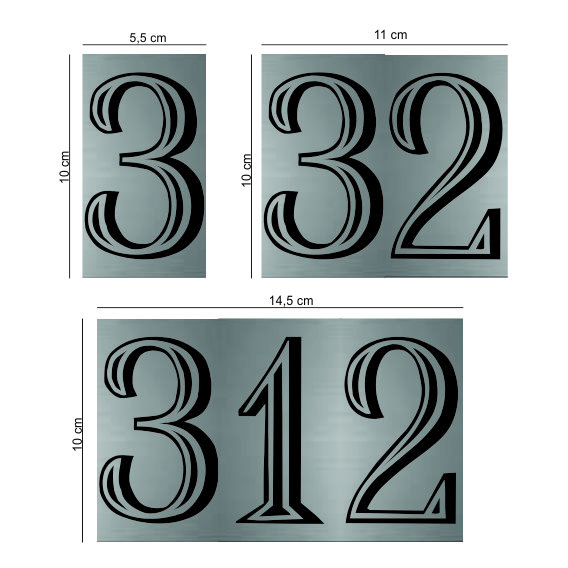 Dimensiuni cifra: 10cm înălțime și 5,5cm lățime. Indicatoarele sunt concepute pentru a se putea alatura astfel incat sa puteti compune foarte usor numere din mai multe cifre.