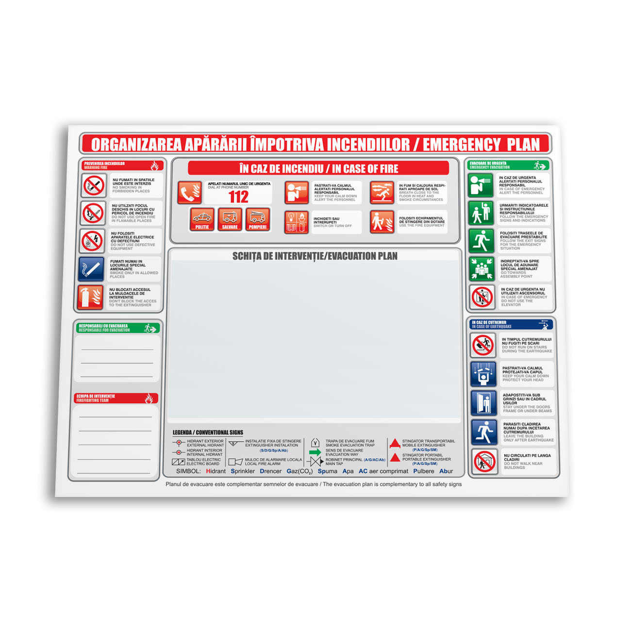 Instalare: planul de evacuare trebuie instalat respectând prevederile art. 29 din OMAI nr. 163/ 2007, la o înălțime corespunzatoare, orientat în funcție de unghiul de vedere, într-un loc bine iluminat, ușor accesibil si vizibil.