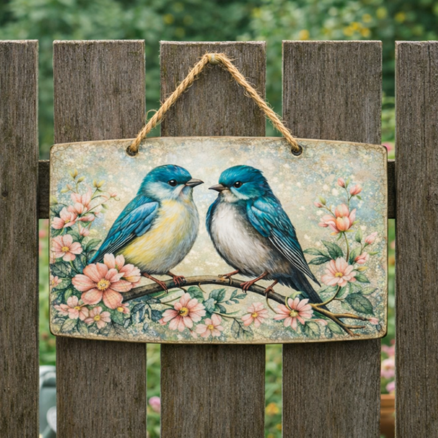 Adauga un accent natural si relaxant gradinii tale cu placuta decorativa cu pasari, perfecta pentru un decor exterior armonios.